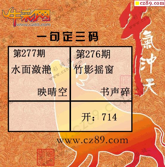 > 2025277期牛彩一句定三码