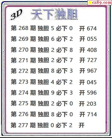天下独胆2025277期3d图谜
